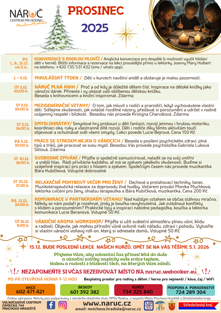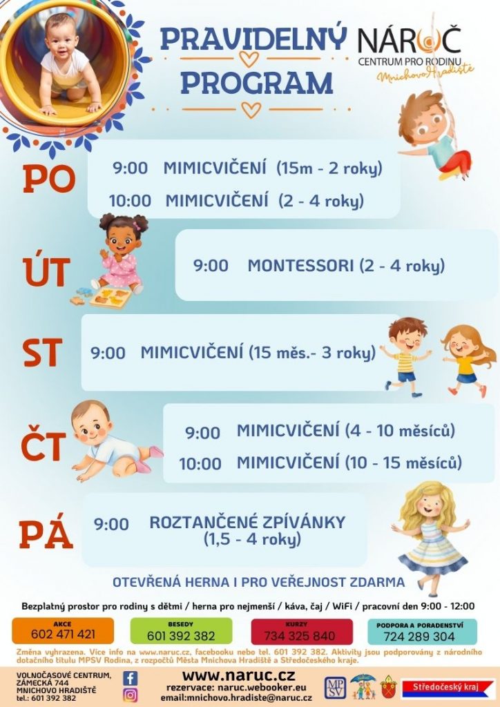 Na většinu akcí a kurzů rodinného centra v Turnově a Mnichově Hradišti je zapotřebí se přihlásit přes náš rezervační systém!